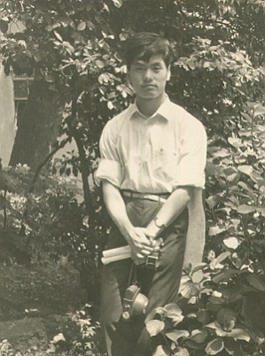 左側の写真は大学受験の写真で、右側は大学入学した直後に校庭で写した写真です。 |