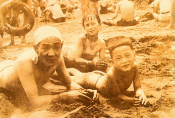 右の写真は父と姉の3人で海水浴に行った時の写真です。写真でもお分かりの様に、父は体が弱かったせいで